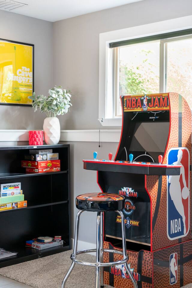 Indulge, Cook, Relax, Play or Work at this stylish and spacious home. 5 bedrooms 3 bath tailor-made for group adventures. Full kitchen, cozy living room, pool table, arcade video game, deck, 65" TV's. Fast 645 Mbps WiFi and dedicated office. Parking is easy with a free carport and plenty of street parking. Travel light with in-unit washer and dryer. Stay cool with central A/C. Create cherished family memories here.